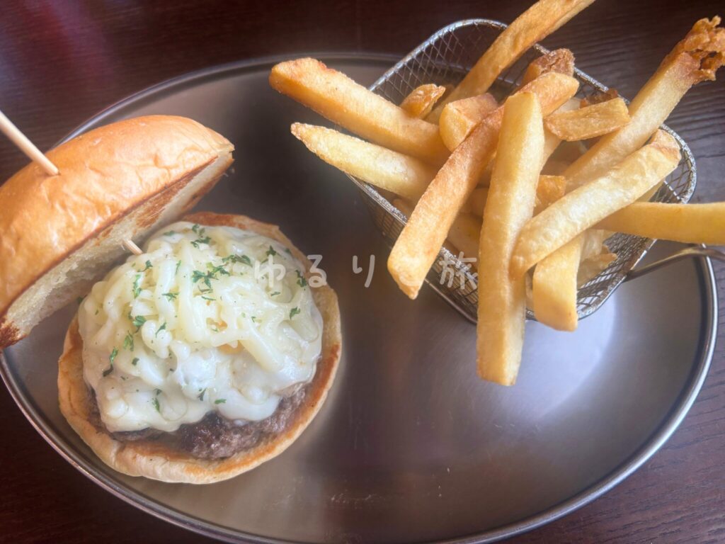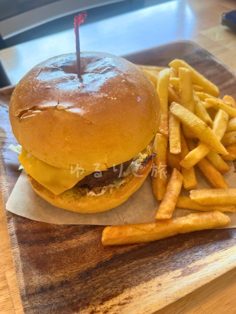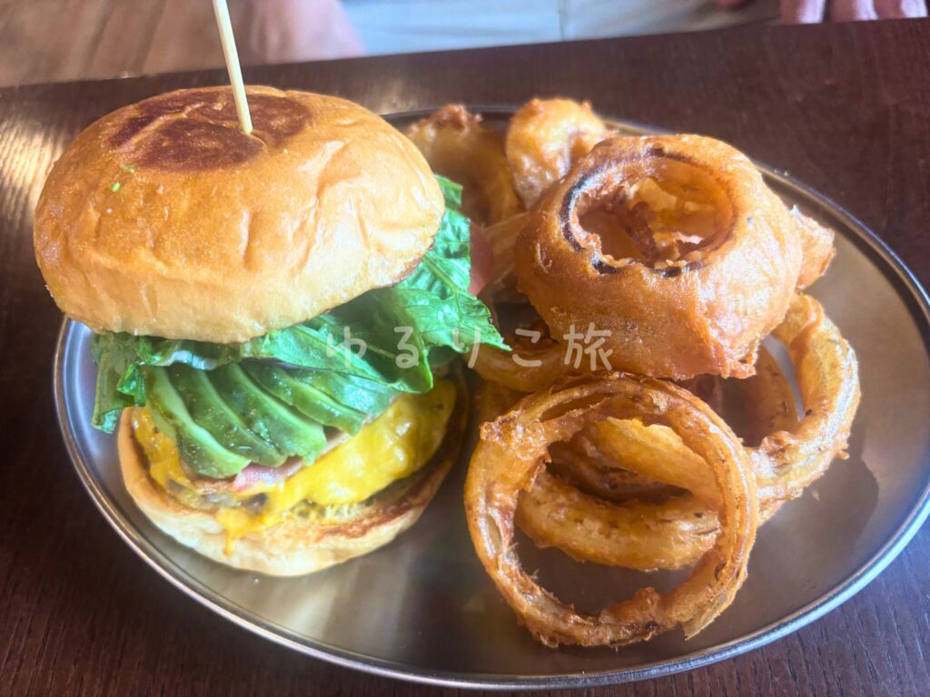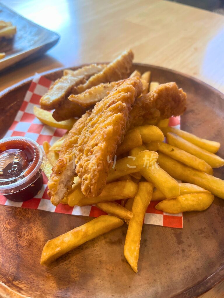 ジューシーなトリュフバーガーは絶品!娘はキッズメニューからチキン&ポテトを注文。