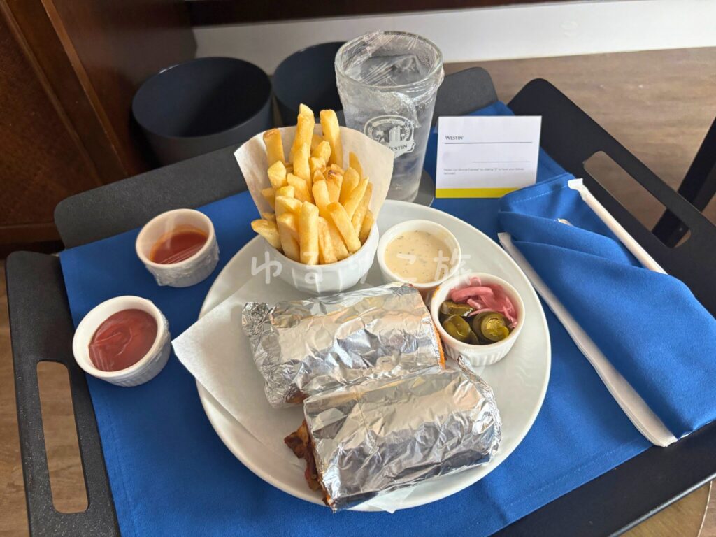到着後はウェスティンクラブラウンジで夕食をとり、子どもも一緒に軽く食べられる料理が揃っていて助かりました。