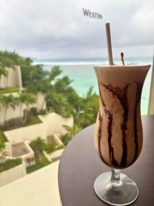 チェックアウトは13時。空港のチェックインまで時間があったので海の見えるバーでジュースやカクテルを楽しみました。
